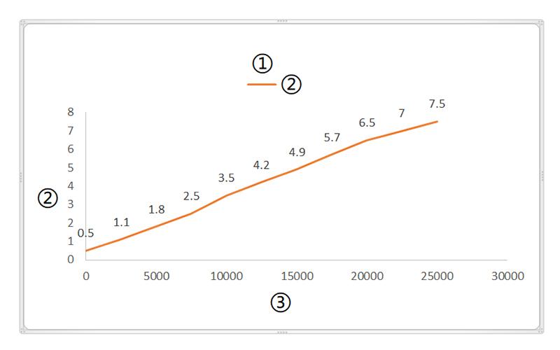 ① Диаграмма усилие-ток ② Потребляемый ток (A); ③ Усилие (Н); ④ Диаграмма усилие-скорость; ⑤ Скорость (мм/сек)