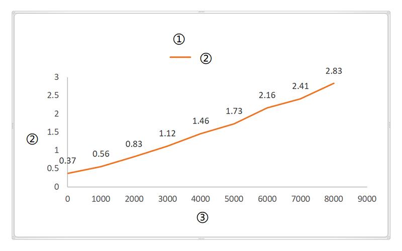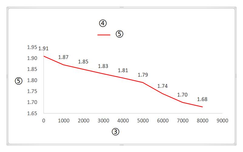① Диаграмма усилие-ток ② Потребляемый ток (A); ③ Усилие (Н); ④ Диаграмма усилие-скорость; ⑤ Скорость (мм/сек)