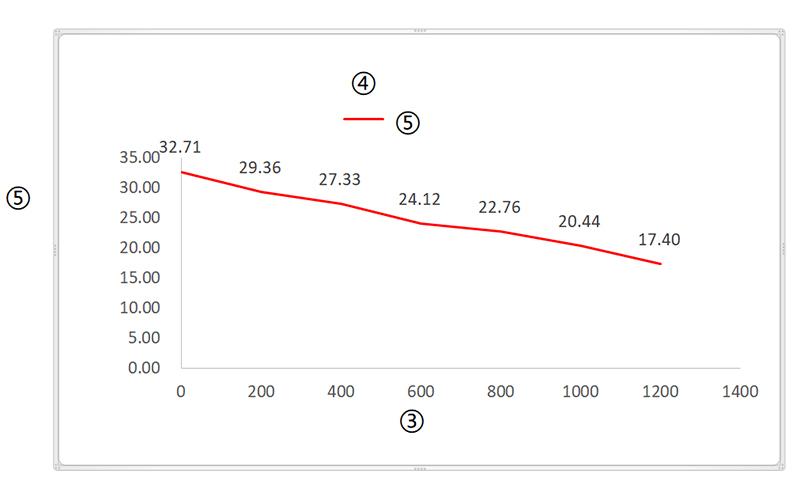 ① Диаграмма усилие-ток ② Потребляемый ток (A); ③ Усилие (Н); ④ Диаграмма усилие-скорость; ⑤ Скорость (мм/сек)